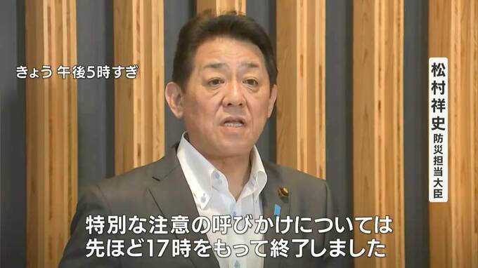 「特別な注意の呼びかけについてはさきほど17時をもって終了しました」