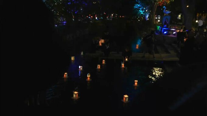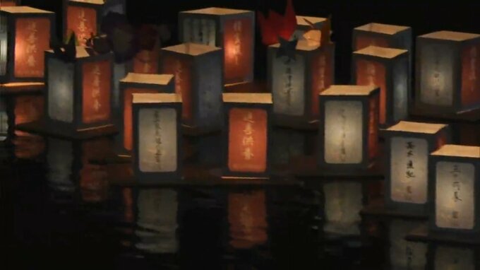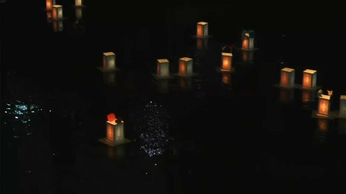 やがて日が暮れるとほのかな灯りが水面を染めながら静かに流れていきます。