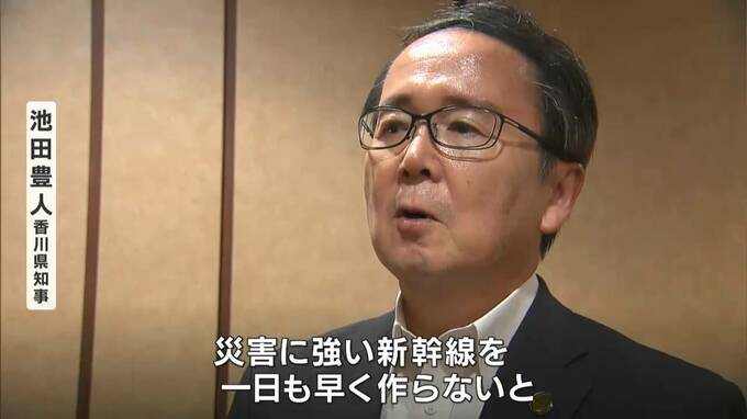 「新幹線が無いと、四国の中の人の移動というのは、かなりダメージが長く続くと思います。災害に強い新幹線を一日も早く作らないと」