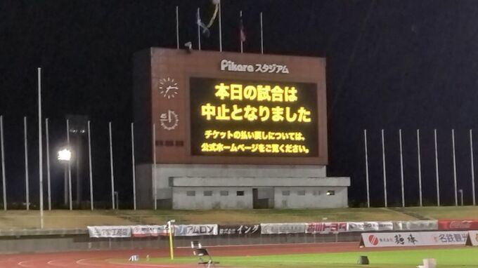 きょう(25日)午後7時から香川県丸亀市のPikaraスタジアムで行われる予定だったサッカーJ3・カマタマーレ讃岐と福島ユナイテッドFCの試合が、雷のため中止になりました。