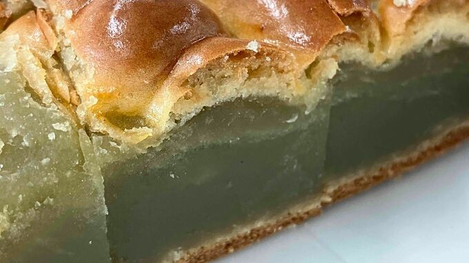 今SNSで話題になっている、特大サイズの「かぶとがにまんじゅう」も販売されています。かぶとがにの透明な血液は、空気に触れると青緑色になることにちなみ、中に抹茶あんを入れたということです。