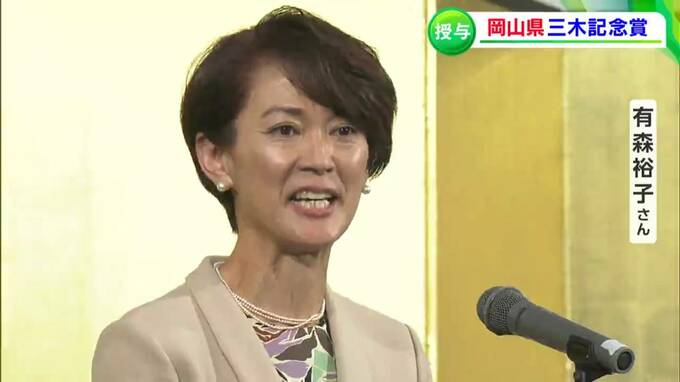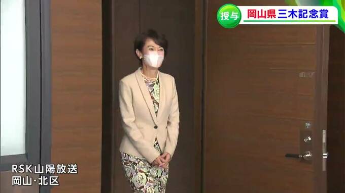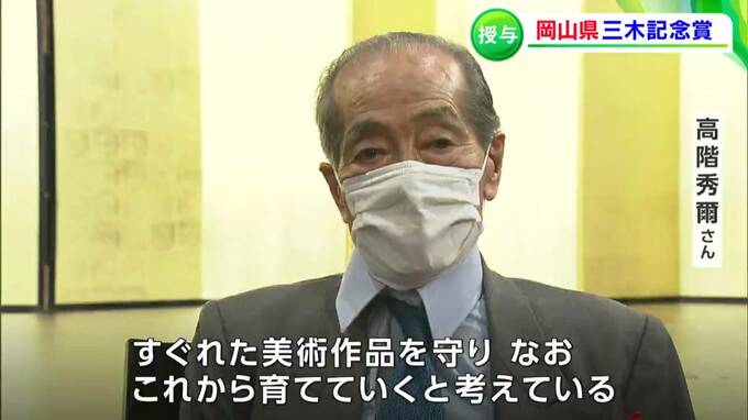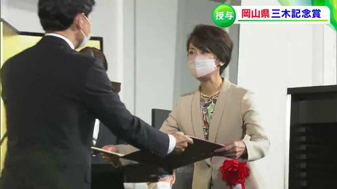 岡山県三木記念賞の授与式が開かれ、大原美術館の館長・高階秀爾さんと、岡山市出身で、スポーツを通じて国の内外で活動する有森裕子さんに賞状などが贈られました。