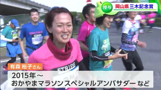 またNPО法人「ハート・オブ・ゴールド」の代表理事を務め、スポーツを通じて、国の内外で社会貢献活動を続けていることなどが評価されました。おかやまマラソンでは第一回からスペシャルアンバサダーも務めています。