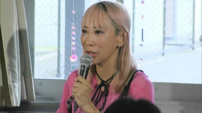 蜷川さんはおよそ60人の観客の前でこれまでに制作した作品に込めた思いなどを解説したあと、新見市の満奇洞で披露する予定の新作について話しました。