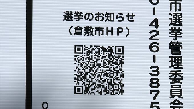 倉敷市役所前では、午前9時半から岡山県知事選挙のポスター掲示場が設置されました。掲示場は県内5286か所に設けられる予定で、若者の投票率を上げたいと期日前投票についての紹介などにつながる2次元コードも表示されています。