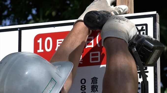 来月(10月)10日に告示、27日に投開票が行われる岡山県知事選挙に向けてポスター掲示場の設置が倉敷市で始まりました。