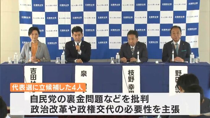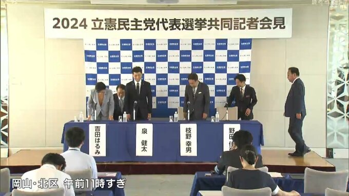 きょう(14日)午前、立憲民主党の代表選挙に立候補している4人が岡山市北区のホテルで記者会見を開きました。
