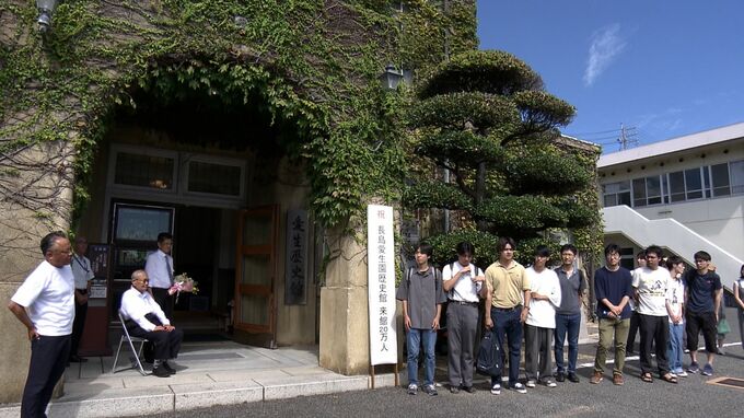 長島愛生園歴史館の20万人目の来館者となったのは、京都大学4年生で倫理学研究室の仲間と訪れた黒田雄誠さんです。