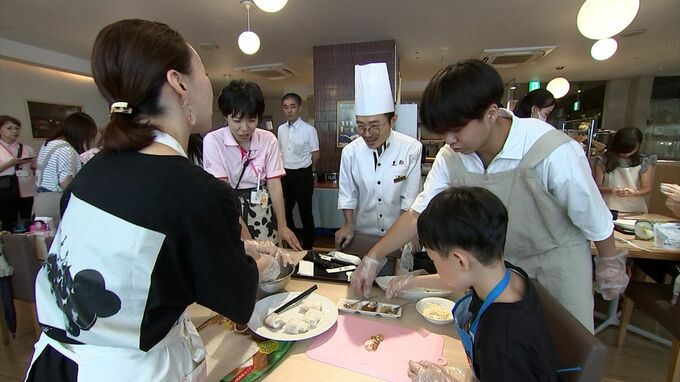 来月10月は「食品ロス削減月間」です。「食品ロス」を減らすための理解を深めてもらおうと、消費期限が迫った食品を子どもたちがホテルのシェフと協力してアレンジグルメに挑戦しました。