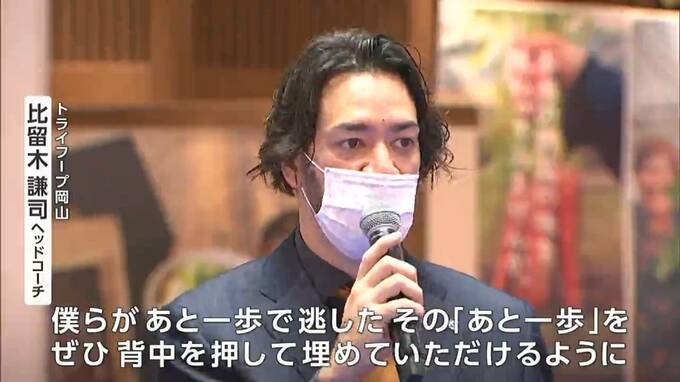 B3リーグのトライフープ岡山は、きのう(4日)開幕前の公開記者会見を開き、昨シーズン惜しくも逃した悲願の「B2昇格」を地元ブースターの前で誓いました。