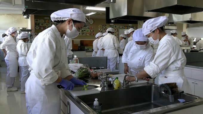 コンテストは地産地消や食育を目的に津山東高校がスーパーマーケットの「マルイ」や大手食品メーカー「味の素」とともに毎年、行っているものです。パリ五輪が開催された今年のテーマは「スポーツ応援飯」。食物調理科の生徒が8つのチームに分かれて個性豊かなスタミナ料理を考え味やアイデアの面白さが審査されました。