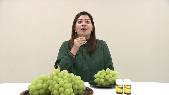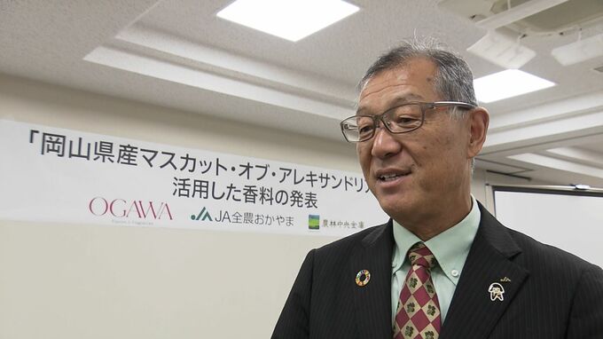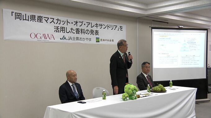 岡山県が全国で生産量1位を誇る「マスカット・オブ・アレキサンドリア」をPRしようと、香りを再現した香料が完成しました。