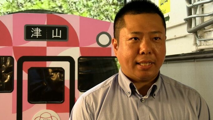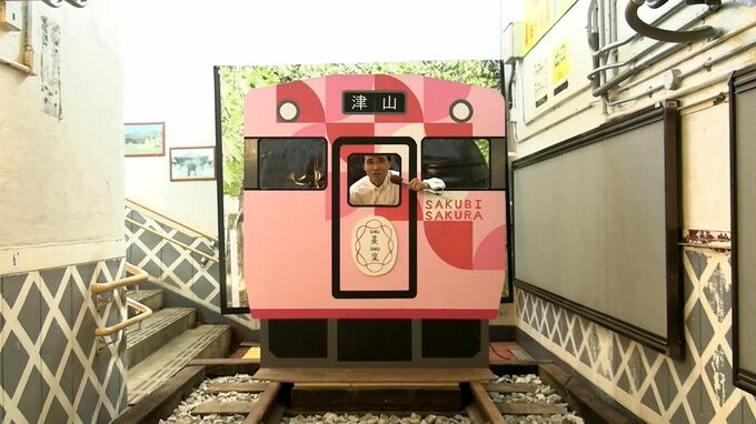「こちらは土・日・祝に岡山津山駅間を往復する観光列車サクビサクラのフォトスポットです」