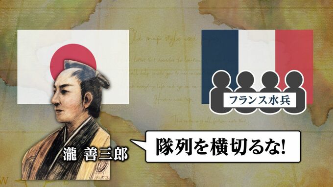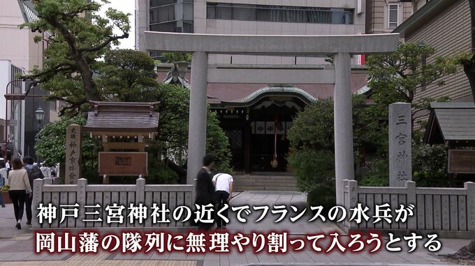 善三郎らの隊列が神戸三宮神社の近くに来た時フランスの水兵が侍の隊列に無理矢理割って入ろうとしたのです。