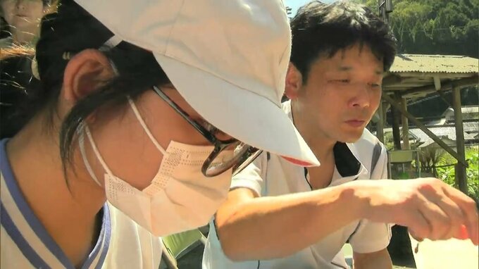 高田小学校の5年生9人が地元・津山市上横野の和紙工房を訪れ、作業工程のひとつ「へぐり」を体験しました。