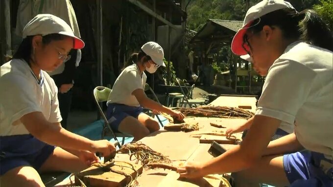 岡山県津山市の小学生が和紙作りの作業工程のひとつ「へぐり」を体験しました。