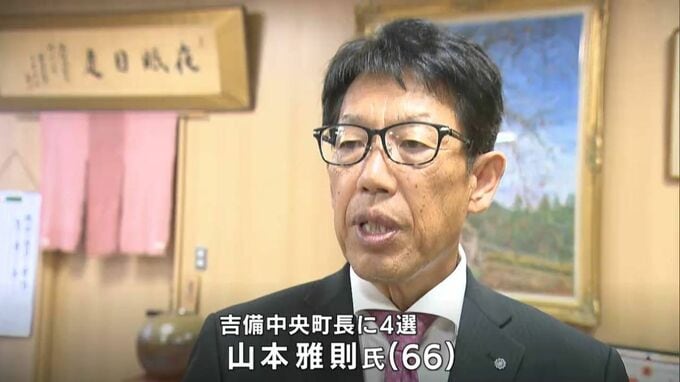 任期満了に伴う吉備中央町長選挙がきのう(29日)投開票が行われ、現職の山本雅則氏(66)が新人の森安高廣氏(47)を破り4回目の当選を果たしました。