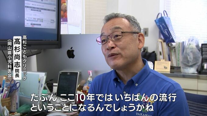 総社市にある高杉こどもクリニックでは、今朝も熱や咳の症状を訴える子どもが多く受診していました。岡山県小児科医会の高杉院長は最近マイコプラズマ感染症の患者が急増していると言います。