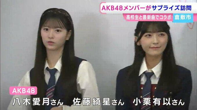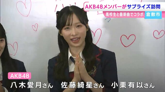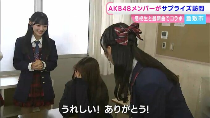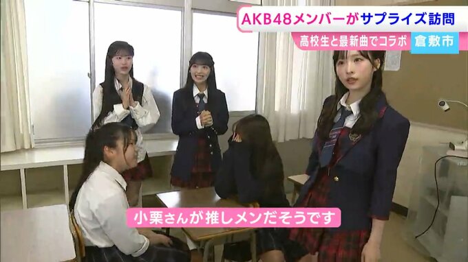 AKB48小栗有以さんらがサプライズ訪問 「恋 詰んじゃった」踊り再生数が高かった翠松高校 泣き出す女子高生も【岡山・倉敷市】 2024年10月10日(木) 20:54 岡山 そのとき!教室のドアが開き…現れたのは!? 「キャー!」 突如現れたメンバーに教室は大興奮! 憧れの存在を前に泣き出してしまう生徒も。 「小栗さんが推しメンだそうです」 (AKB48 小栗有以さん) 「私ですか?本当ですか?嬉しい!ありがとう!」