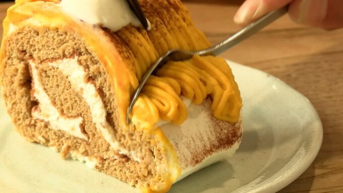 岡山県の津山産小麦で作られた人気のロールケーキ「津山ロール」。地元の食材を使った秋の限定バージョンが、あす(12日)から発売されます。