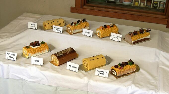 食べ比べも楽しい津山ロール秋バージョン。各店舗で12日から販売開始です。