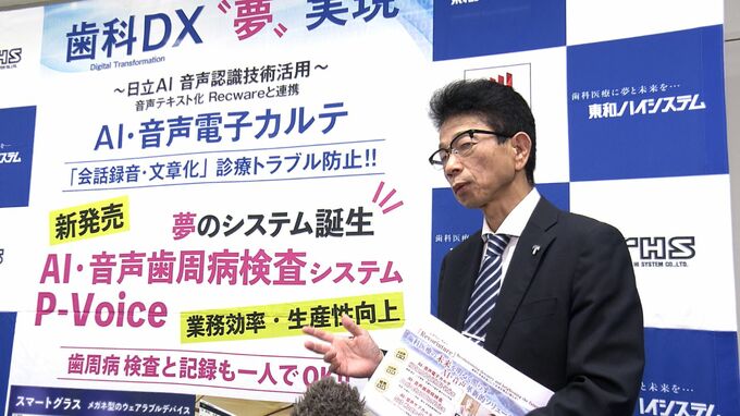 「AI・音声なので、空の雲と生物のクモを前後の文章で見極める・判断する、ここに大きな違いがある。当社としては歯科DXで様々な社会問題を解決したい」