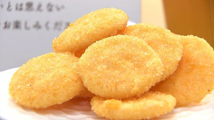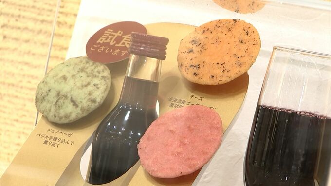 こちらはなんとワインにあうせんべい。トマト味やジェノベーゼ味など高級感のある大人向けの和菓子や洋菓子が並びます。全国の百貨店のバイヤーらを招き、源吉兆庵グループが開いている新作発表会です。来年、春から夏にかけて販売を予定している144の商品がお披露目されました。