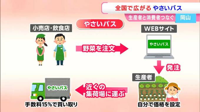 岡山でも画期的な流通システムとなるのか。採れたての野菜と生産者の思いを乗せて、やさいバスは走ります。