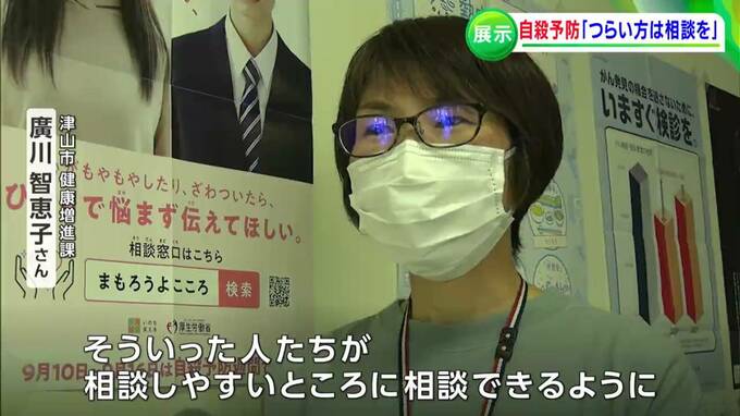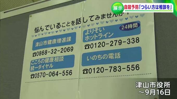 津山市役所のロビーでは自殺の予防を啓発する展示が始まりました。