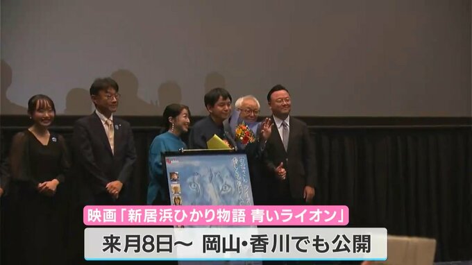 その嘉成さんの歩みを描いた映画「新居浜ひかり物語青いライオン」は、RSK山陽放送が創立70周年を記念して制作したもので、映画の舞台となった新居浜市できのう(18日)から先行上映が行われています。