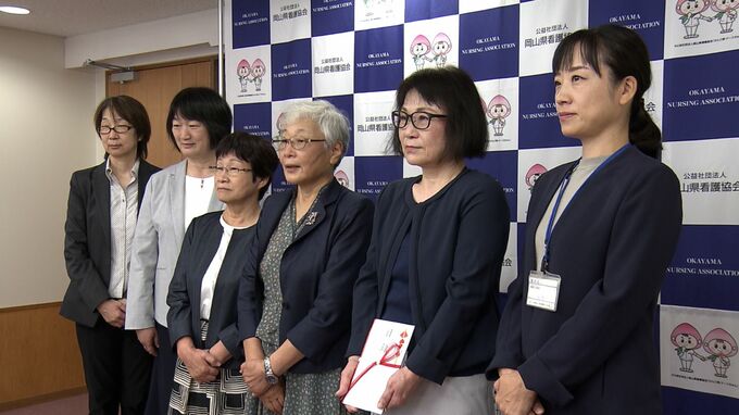 がんの予防や治療の研究に役立ててもらおうと岡山県看護協会が岡山県健康づくり財団に寄付金を贈りました。