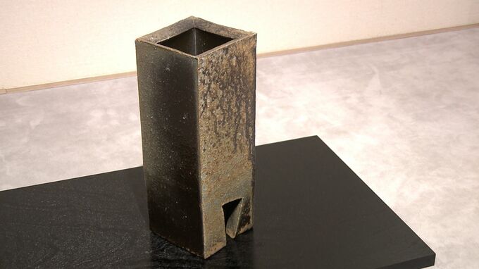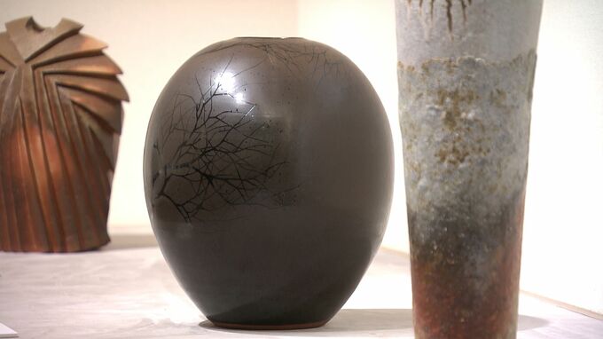 「黒角花生」シンプルなデザインの花器は備前焼の人間国宝伊勢崎淳さんが手掛けたものです。今日(23日)からはじまった展覧会「工藝に生きる者たち」です。