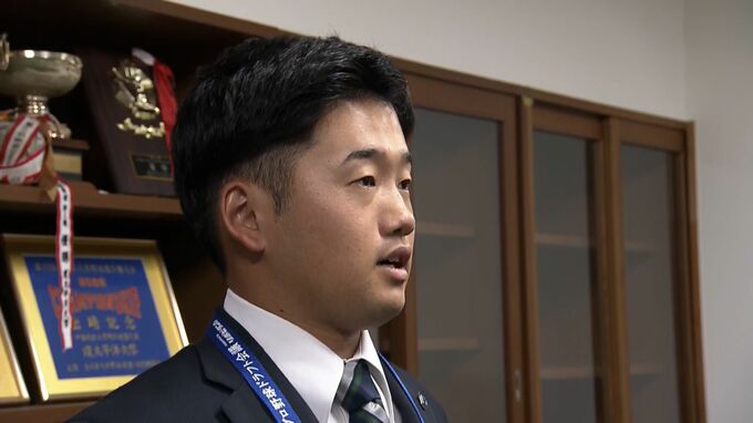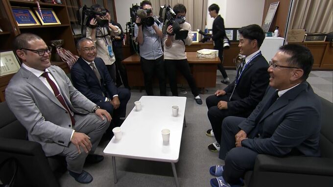 プロ野球ドラフト会議で、楽天から指名を受けたIPU・環太平洋大学の徳山一翔投手のもとに、球団関係者があいさつに訪れました。