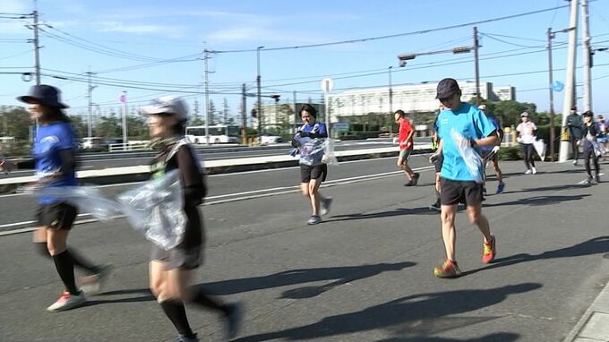 今月10日に開催される「おかやまマラソン」を前に、コースを走りながらゴミ拾いをするイベントが岡山市南区で開かれました。