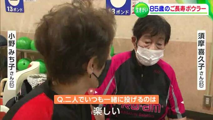 7年ほど前からボウリングを始めた須摩さんは現在も週に2回通っています。いつも一緒にプレーするのは8か月年下の小野みち子さん。小野さんも協会が認定する岡山県の「大関」です。