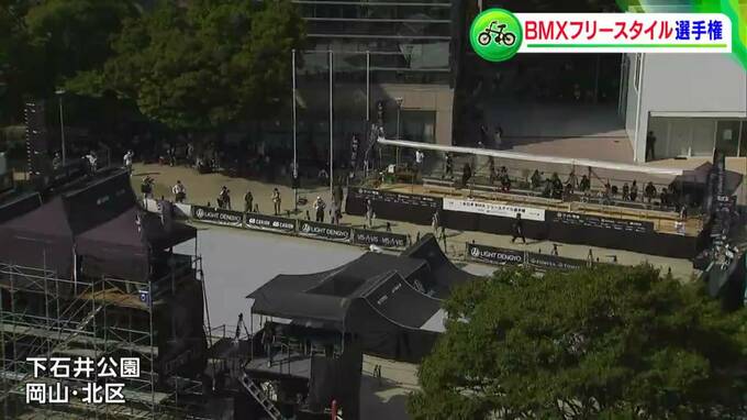岡山市中心部の公園に現れた、巨大な競技フィールド。きょう(16日)開幕した第6回全日本BMXフリースタイル選手権です。大会には、3歳からトップ選手まで約120人が出場。午前中には東京五輪で入賞した大池水杜選手や中村輪夢選手の練習も公開されました。