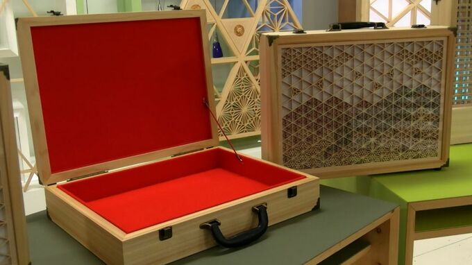 繊細な組子細工で装飾された木製のカバン。佐田建美の新製品「アタッシュケース真庭」です。