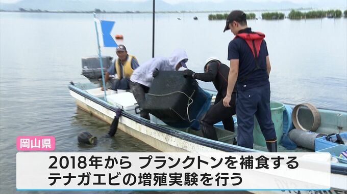 長年にわたり、生活排水や工場排水による汚染が問題となっている児島湖。岡山県では、水質を改善するため、6年前から汚染の原因となっているプランクトンを餌に育つテナガエビを増やす活動に取り組んでいます。