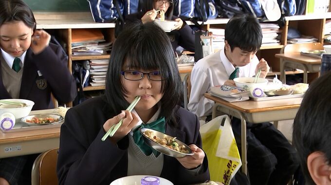 給食に登場したのは、児島湖産のテナガエビです。中学1年生のこちらのクラスでは、テナガエビを初めて食べるという生徒も。
