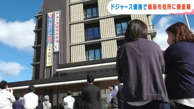 山本由伸投手が所属するドジャースが、先月(10月)ワールドシリーズを制覇したのを讃えて、備前市内の3か所に懸垂幕が掲げられました。