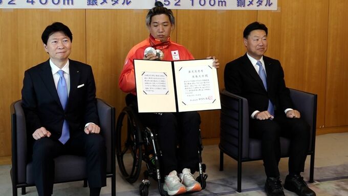 岡山市在住の佐藤選手は、パリパラリンピックの車いす競技400メートルで銀メダルを、100メートルで銅メダルを獲得しました。