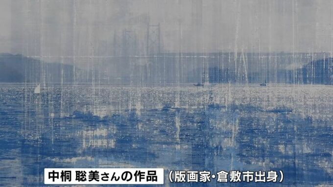 倉敷市出身の版画家・中桐聡美さんは瀬戸内海の写真をシルクスクリーンで複製し、傷や滲みといった加工を施すことで「イメージの変容」を表現しています。