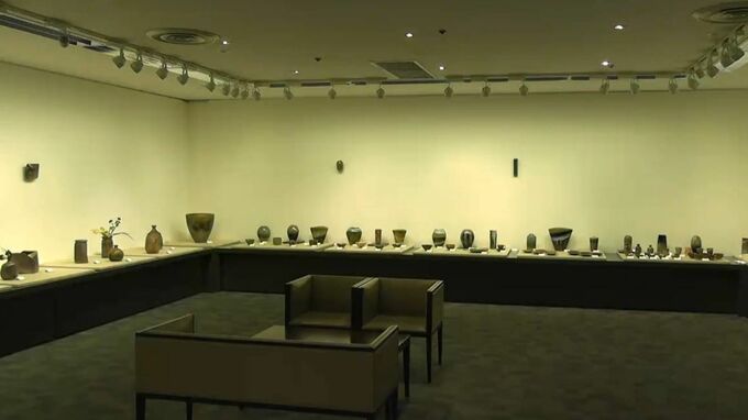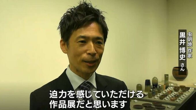 天満屋倉敷店で開かれている作品展「自遊工房」です。日本工芸会の正会員として活躍する備前焼と虫明焼、漆芸と木工を手がける4人の作家の作品約100点がならびます。鑑賞用としてだけでなく日常でも使うことができる作品は、伝統を引き継ぐとともに、作家たちの個性と得意な技法が活かされています。