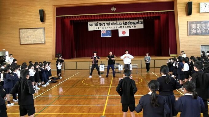 ニュージーランドの勇壮な踊り「ハカ」が披露されます。総社市の阿曽小学校をニュージーランドの先住民マーオリのマティウ・タメさんと2人の息子が訪れ、児童と交流しました。
