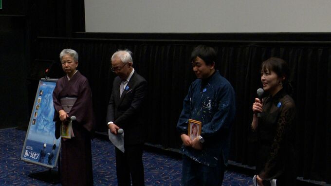 ヒットを記念した舞台挨拶では、映画のモデルとなった石村嘉成さんと父・和徳さん、母・有希子さんを演じたRSK山陽放送の小林章子アナウンサーらが登壇し、撮影にまつわるエピソードなどを紹介しました。