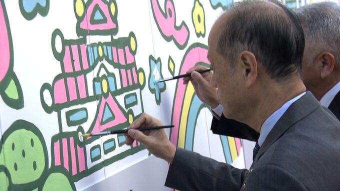 きょう(2日)は、地元の園児も招かれ、大森岡山市長らとともに絵をしあげました。