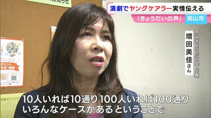 演劇は、当事者である「きょうだい」がそれぞれの体験を語る発表会という設定で演じられます。イベントの総合責任者の増田美佳さんは「ヤングケアラーのほとんどが、当事者であることに気づいていない」といいます。