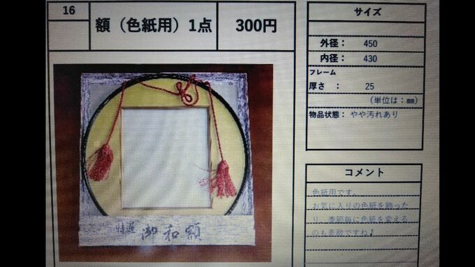 色紙を飾るのにちょうどよい額は、300円。