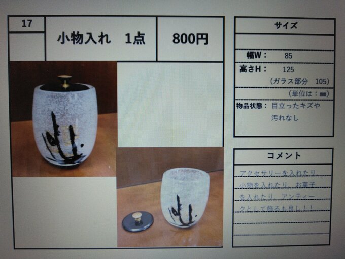 どんな部署で使っていたのでしょうか。ガラス製の小物入れが800円。湯呑のようにも見えます。