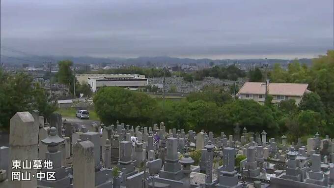 岡山市中区の東山墓地です。朝から墓参りをする人たちが次々と訪れ、墓を掃除し花を供えるなどして先祖の霊を供養していました。